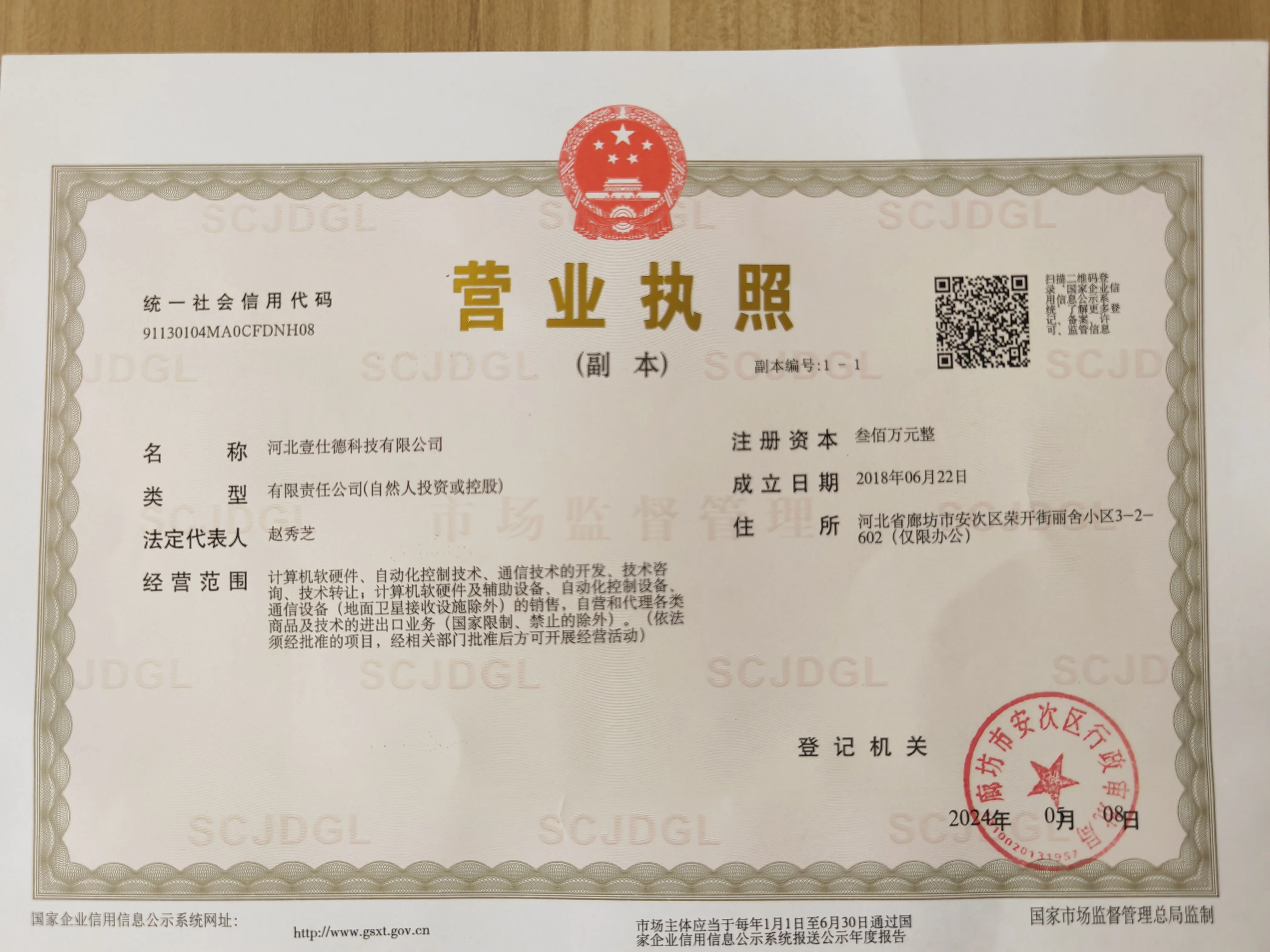 Registered address : 3-2-602 Lishe Community, Rongkai Street Langfang Hebei China